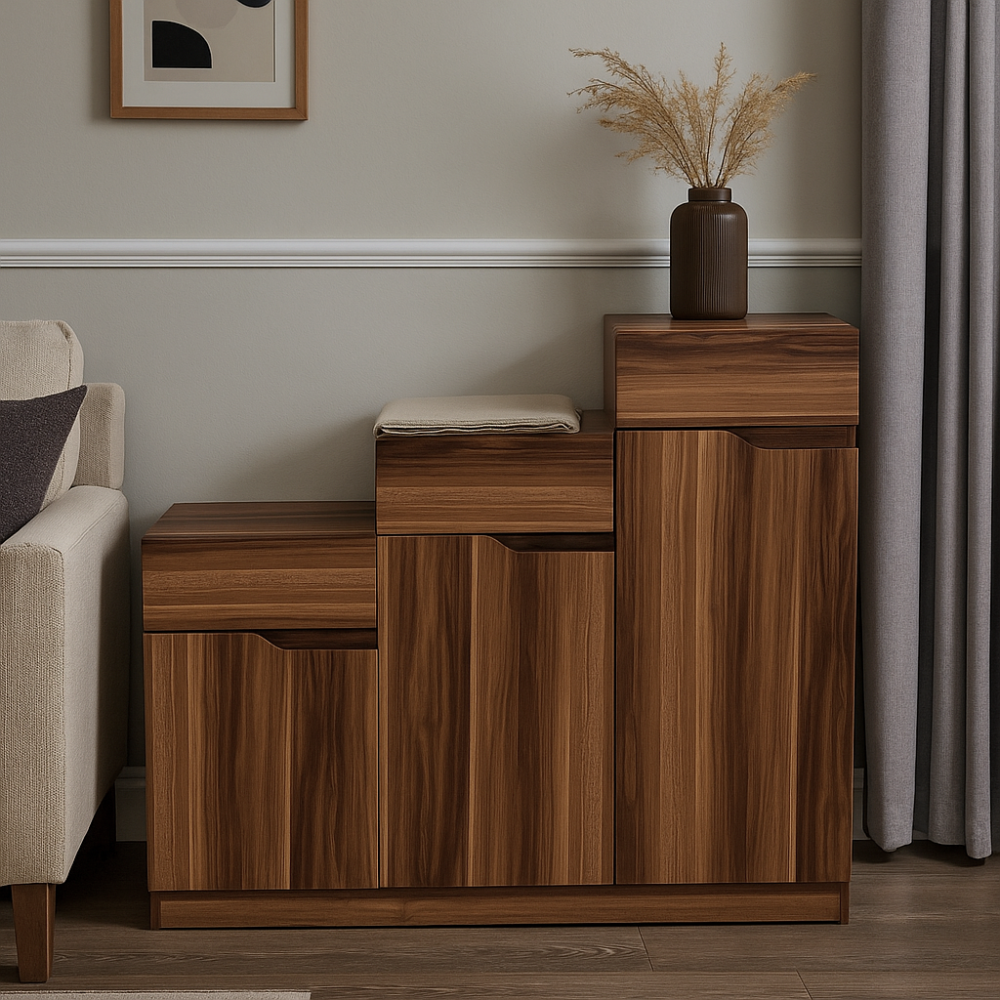 خزانة أحذية خشبية - وسادة مقعد - مساحة تخزين