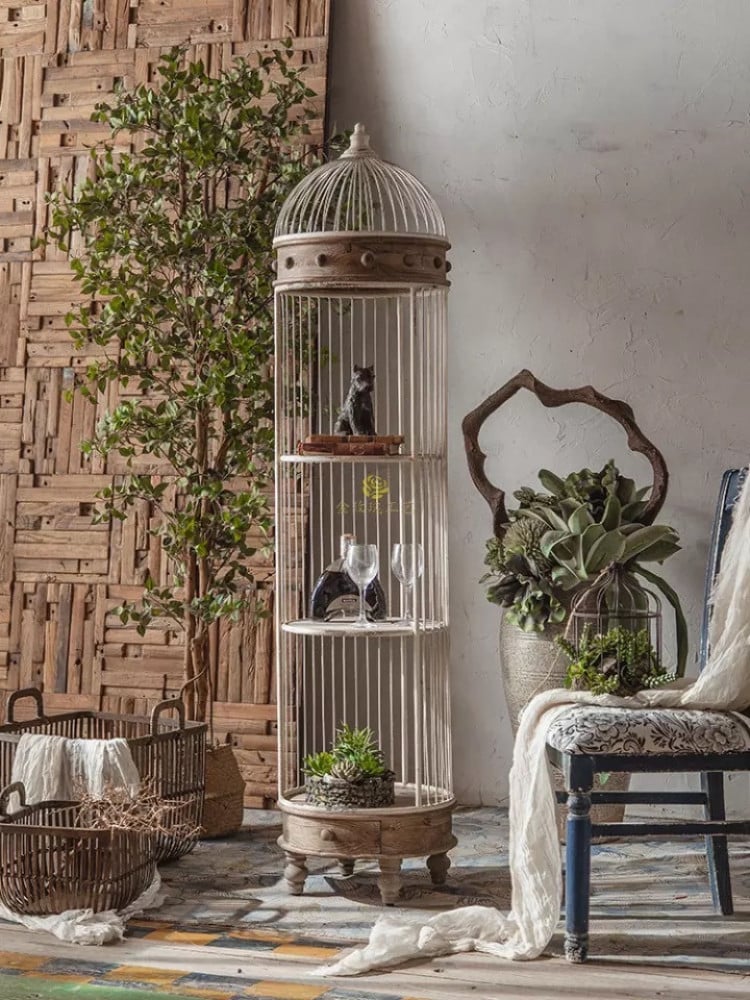 استاند بشكل قفص حديد وخشب ريفي كبير