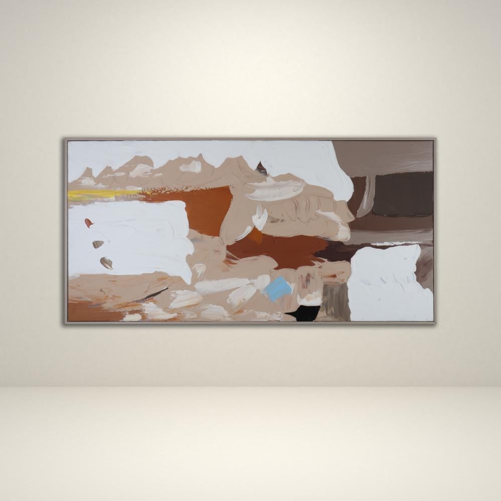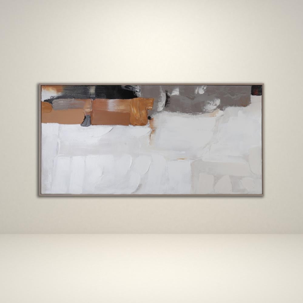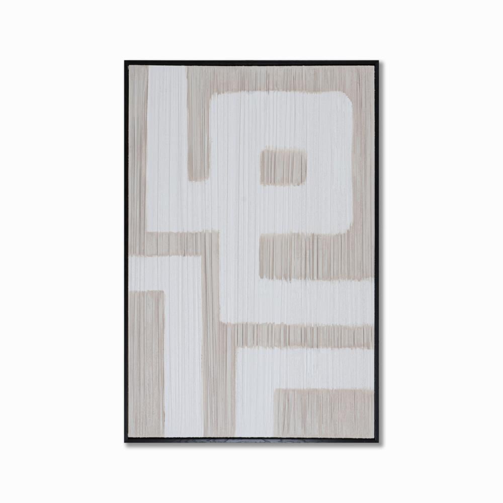 لوحة قماشية تجريدية - لون بيج - إطار خشب