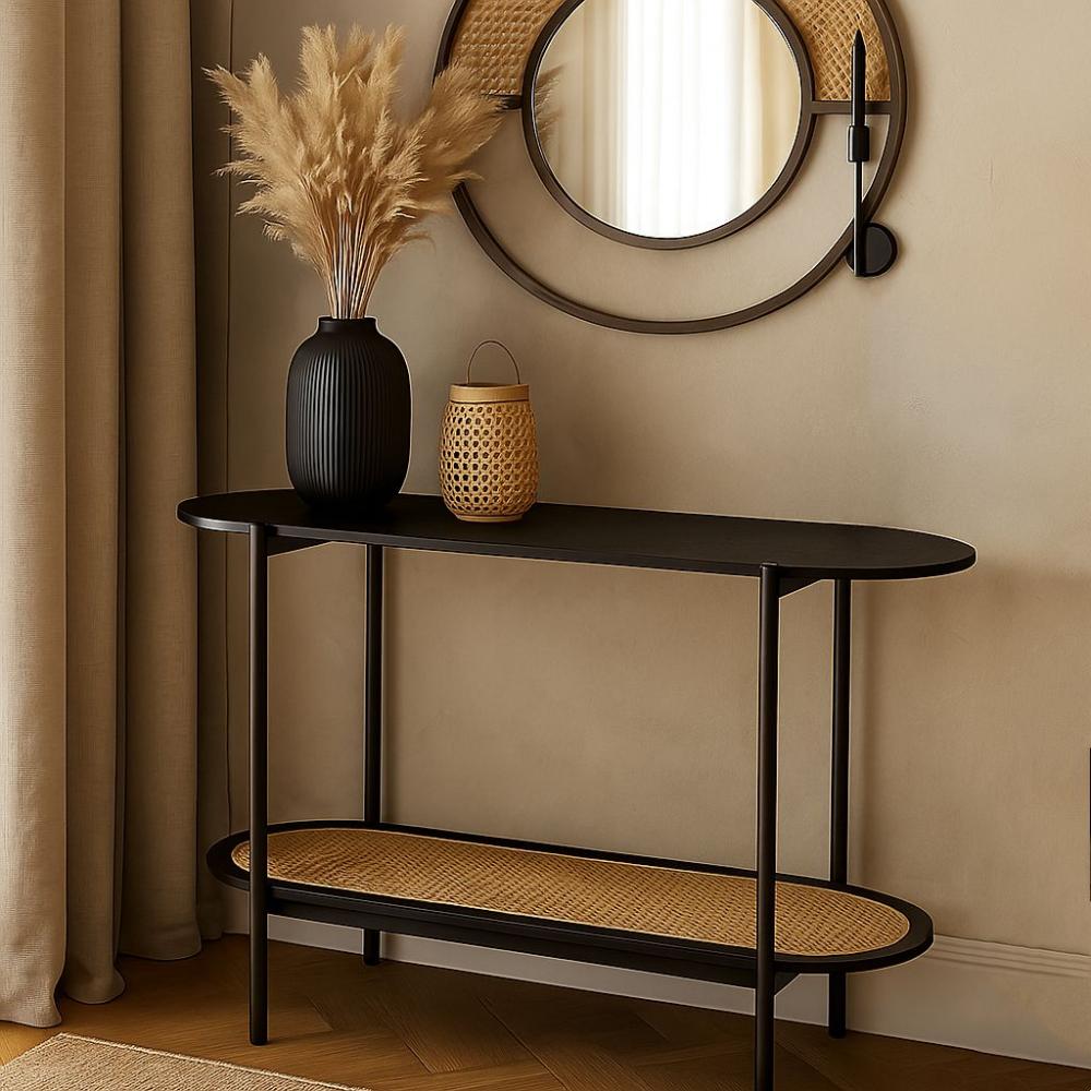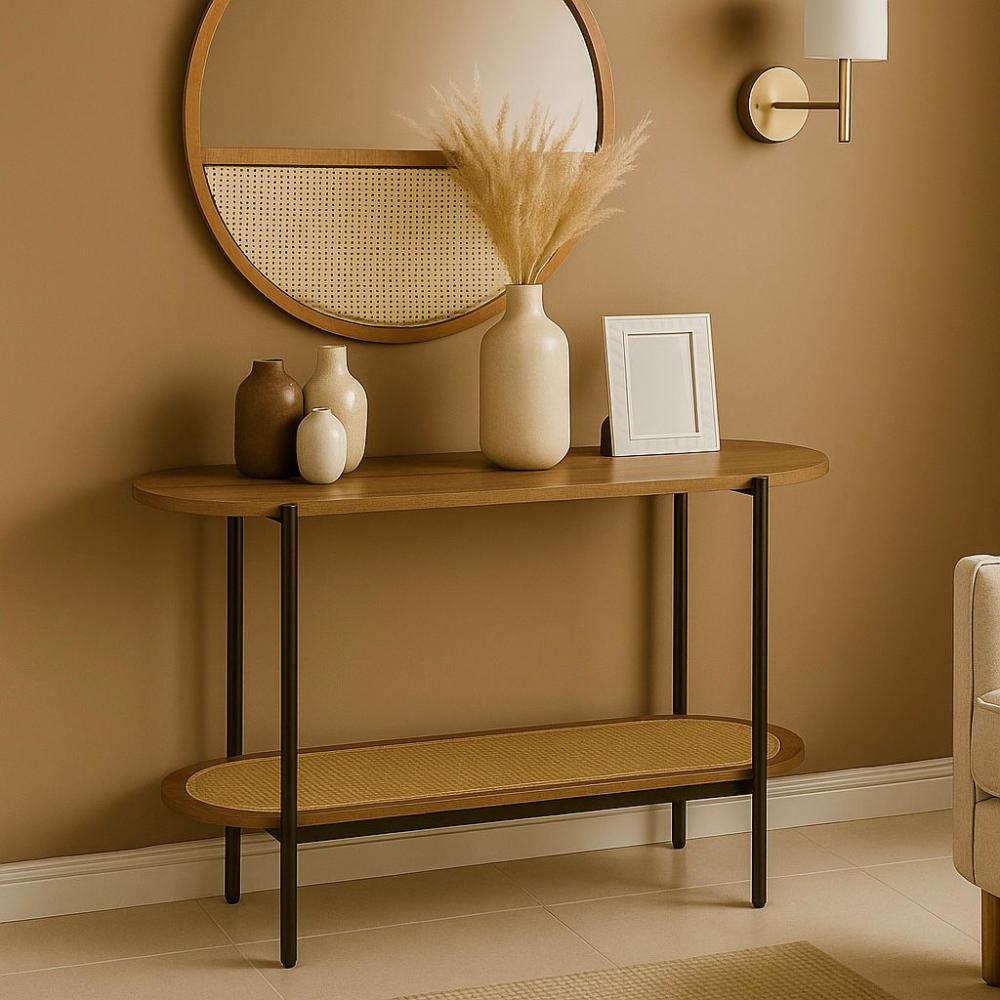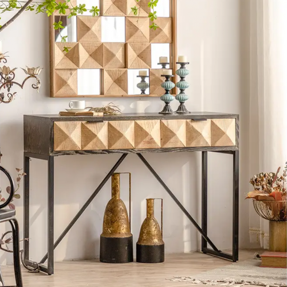 كونسول خشبي بتصميم ريفي - بقواعد حديد