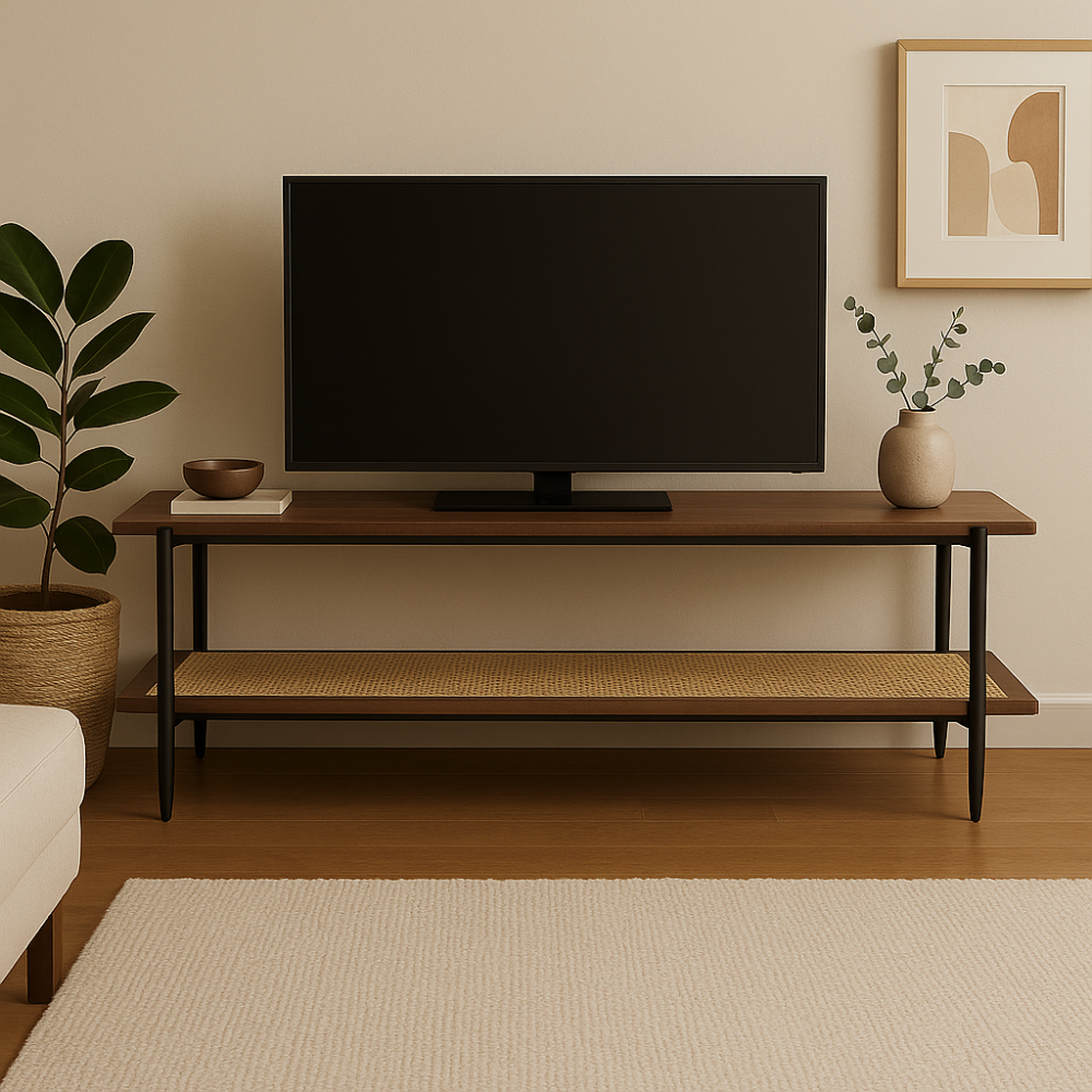وحدة تلفزيون خشبية سوداء للترفيه العصري