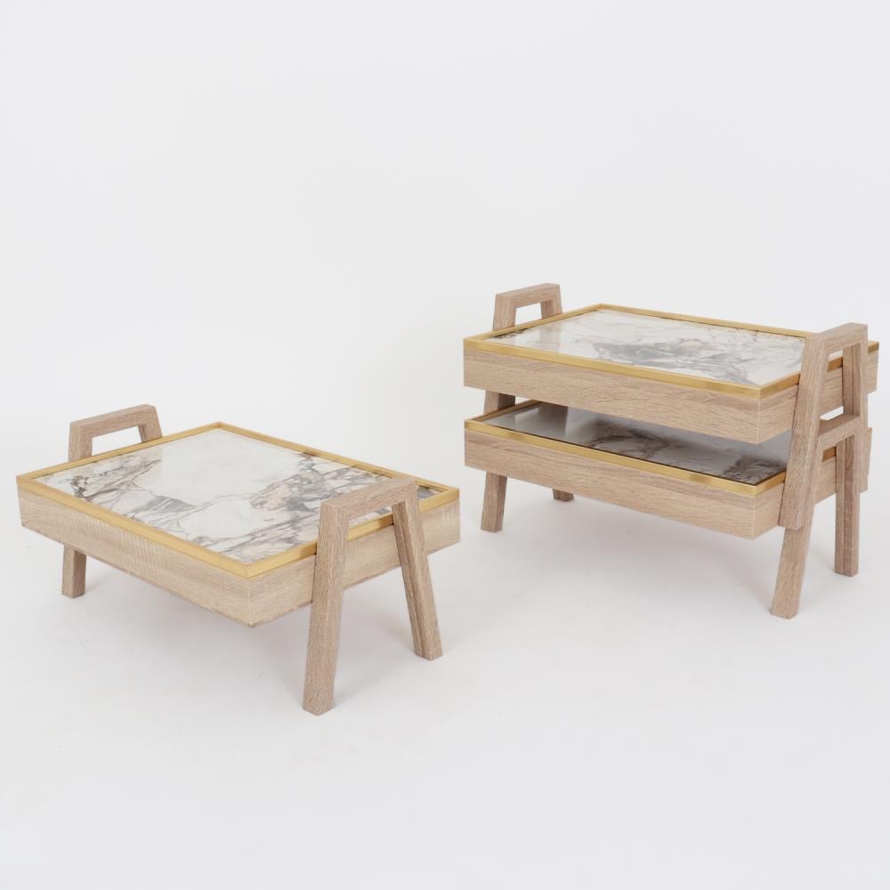 طقم طاولات خدمة - سطح مستطيل فاتح - حواف ذهبية