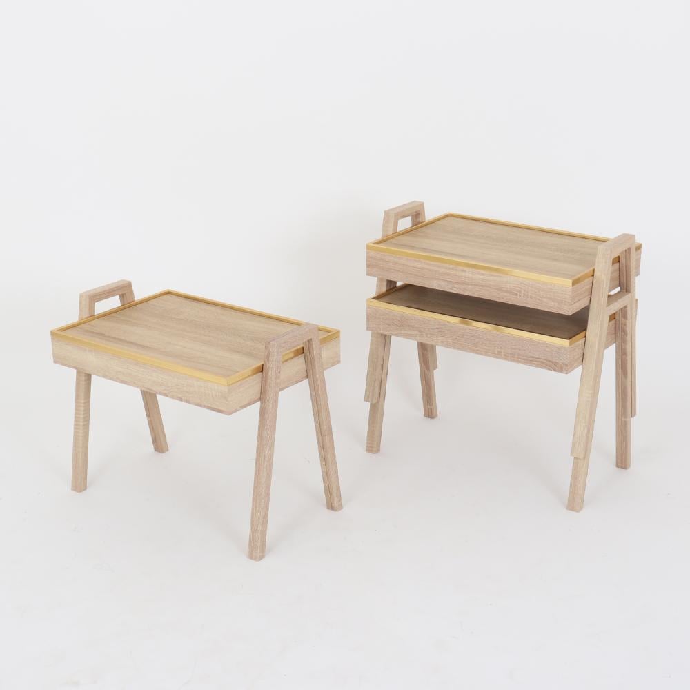 طقم طاولات خدمة ارضيه -سطح دائري - خشب بني بحواف ذهبي