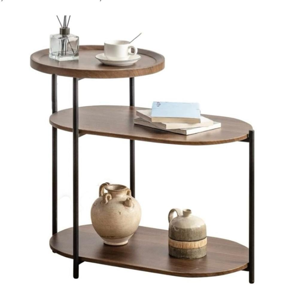 طاولة جانية - خدمة بعدة 3 أسطح خشب بقواعد معدن