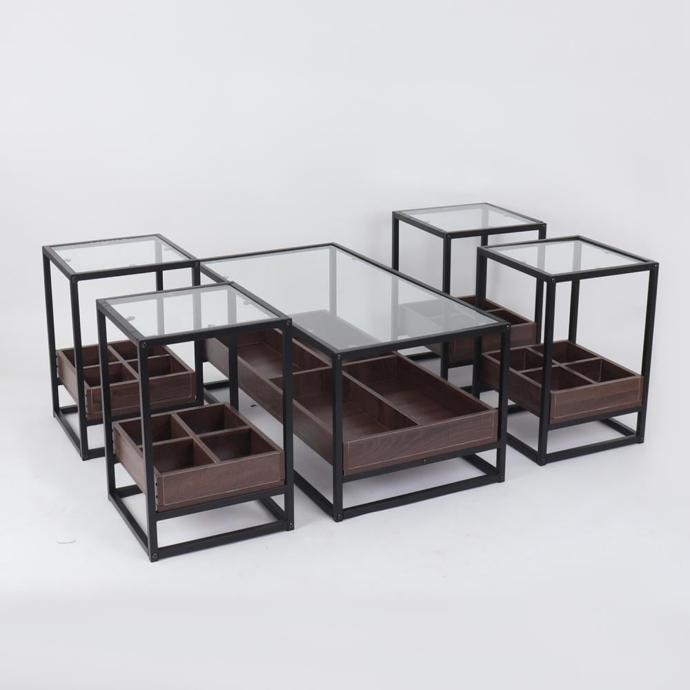 طقم طاولات قهوة - سطح زجاج - مساحات تخزين خشب