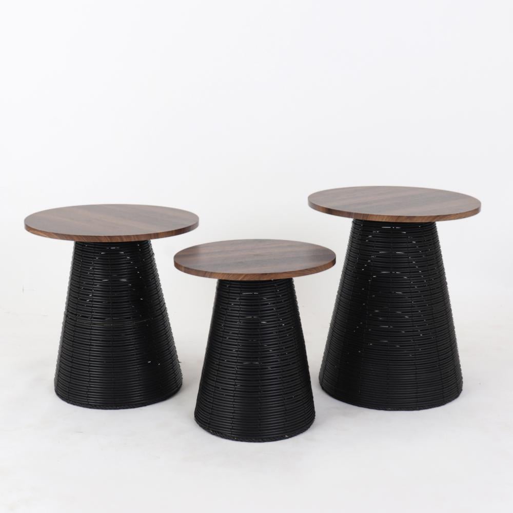 طقم طاولات خدمة - خزف أسود - سطح خشب