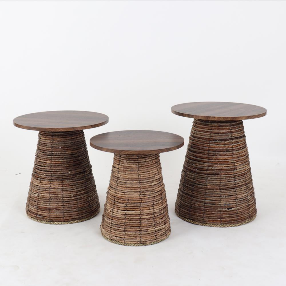 طقم طاولات خدمة خزف داكن - أسطح خشب دائري