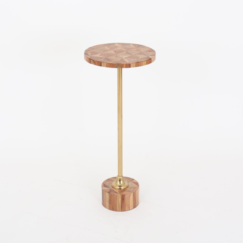 طاولة جانبية دائرية - نقش مثلثات - سطح و قاعدة خشب
