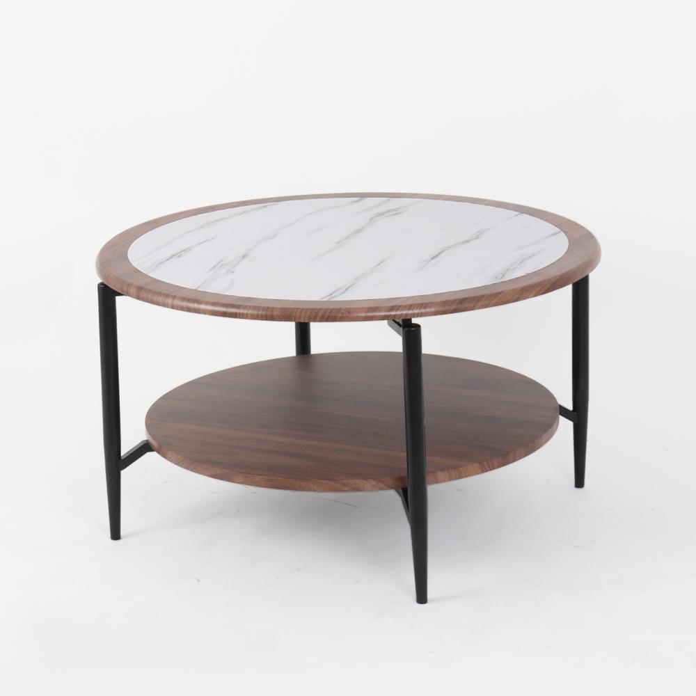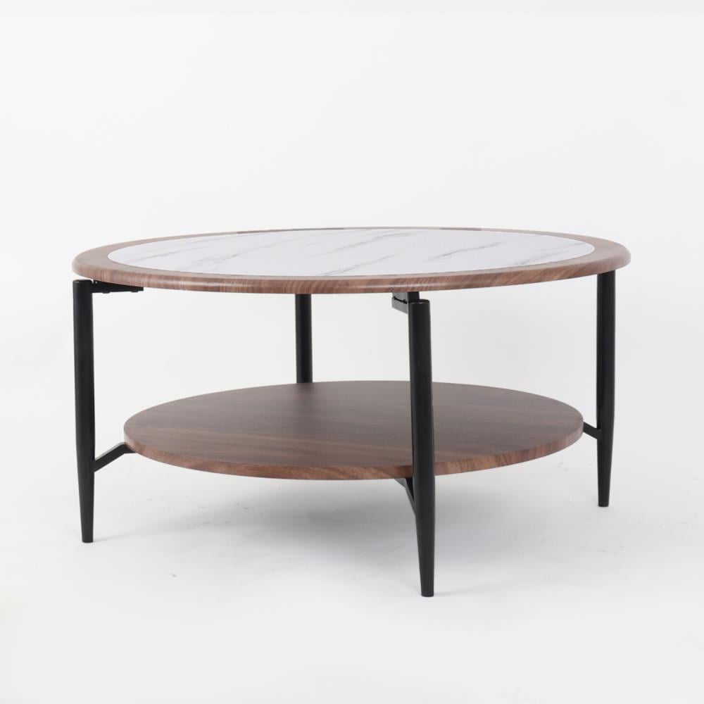 طاولة قهوة دائري خشب بقواعد معدن 100 سم