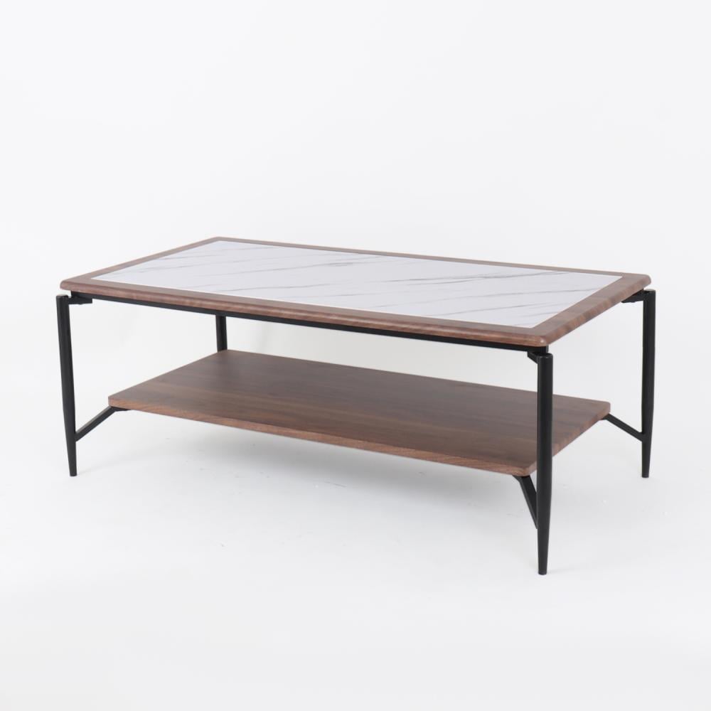 طاولة قهوة مستطيلة خشب - لون أبيض و بني - قواعد معدن