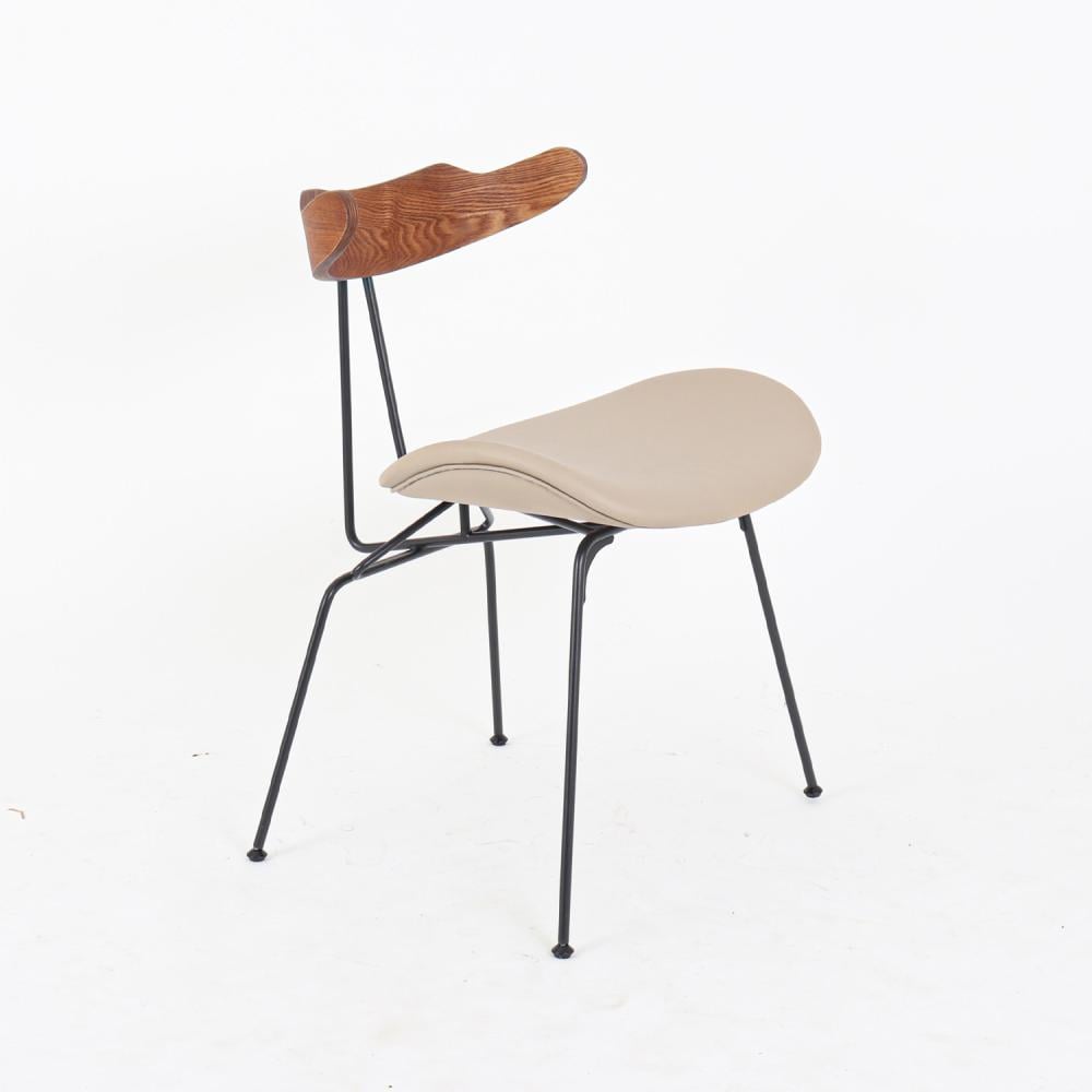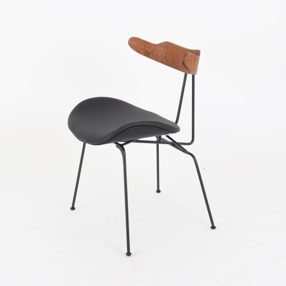 كرسي إسكندنافي عصري - مقعد جلد اسود