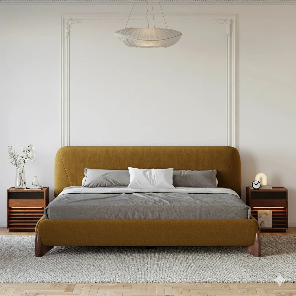 سرير بتصميم عصري من خشب البلوط وقماش البوكليه،