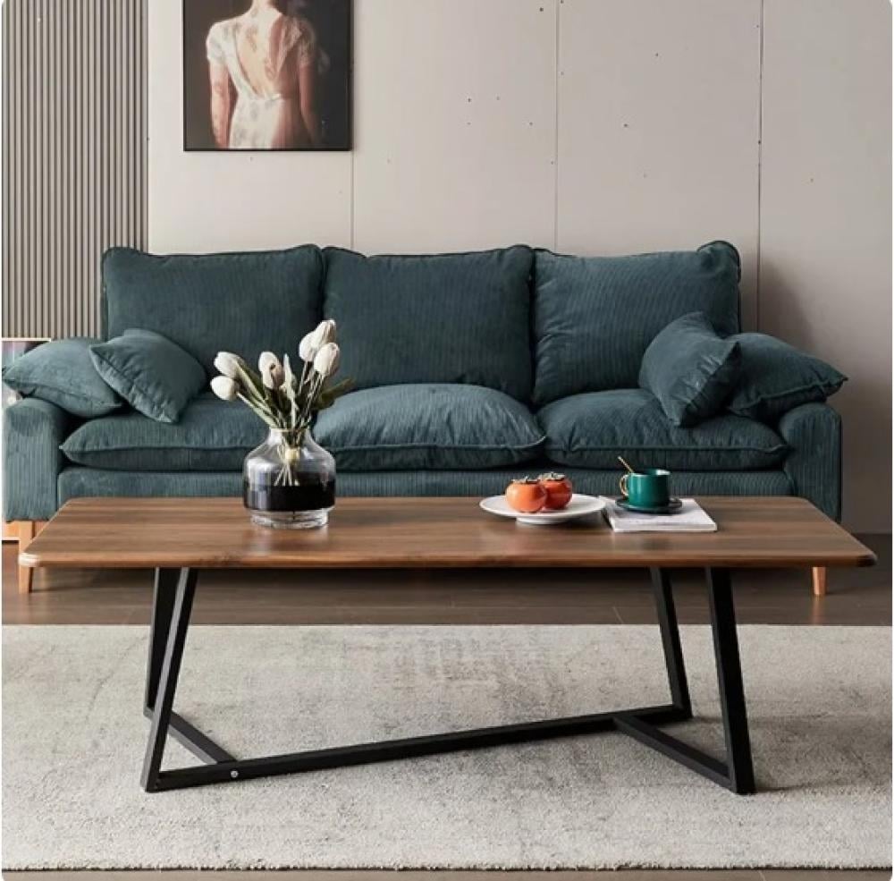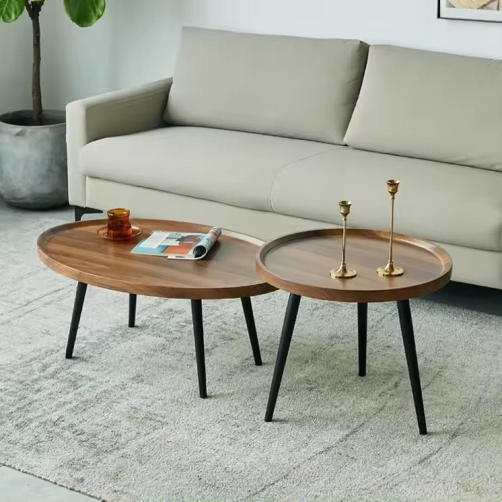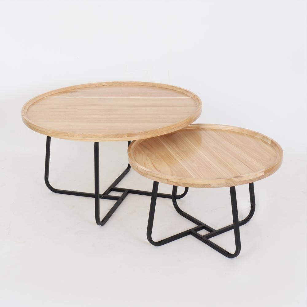 طقم طاولات قهوة وسط خشب بقواعد معدن