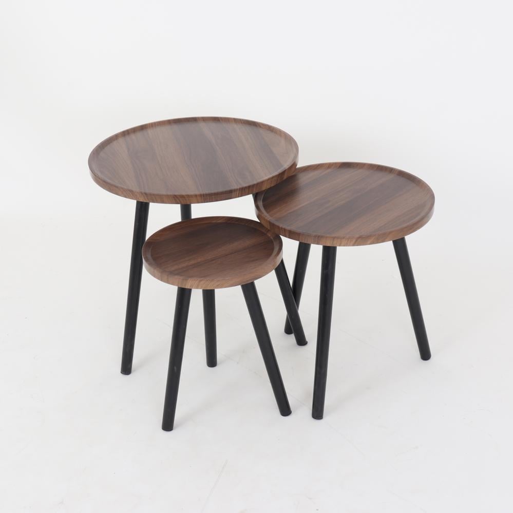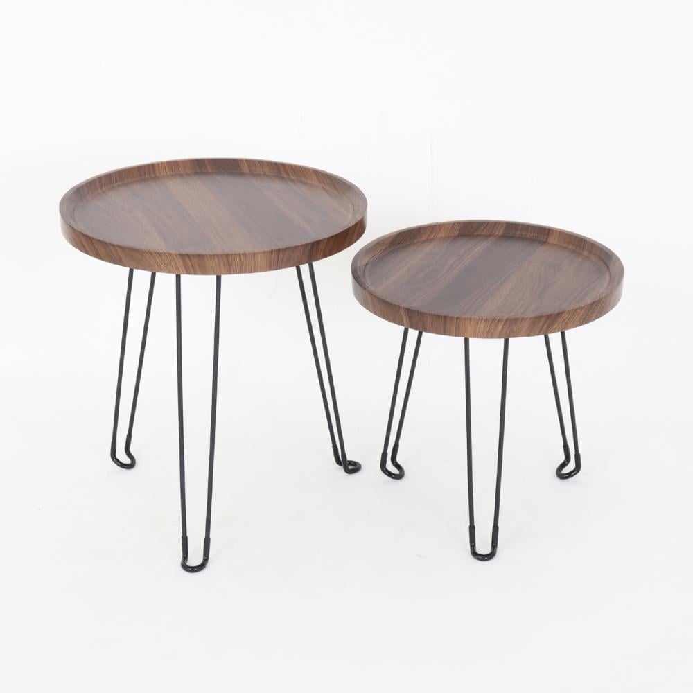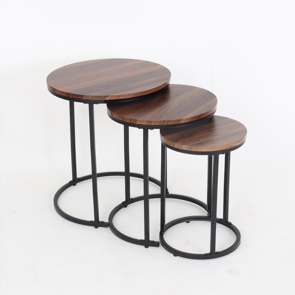 طقم طاولات خدمة خشب بقواعد معدن - بني + أسود