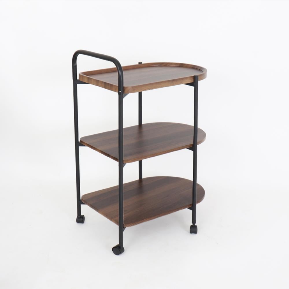 عربة تقديم 3 طوابق خشبي بقواعد معدن