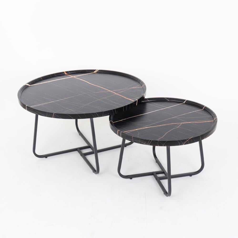 طقم طاولات قهوة وسط خشب بقواعد معدن - أسود رخامي + أسود