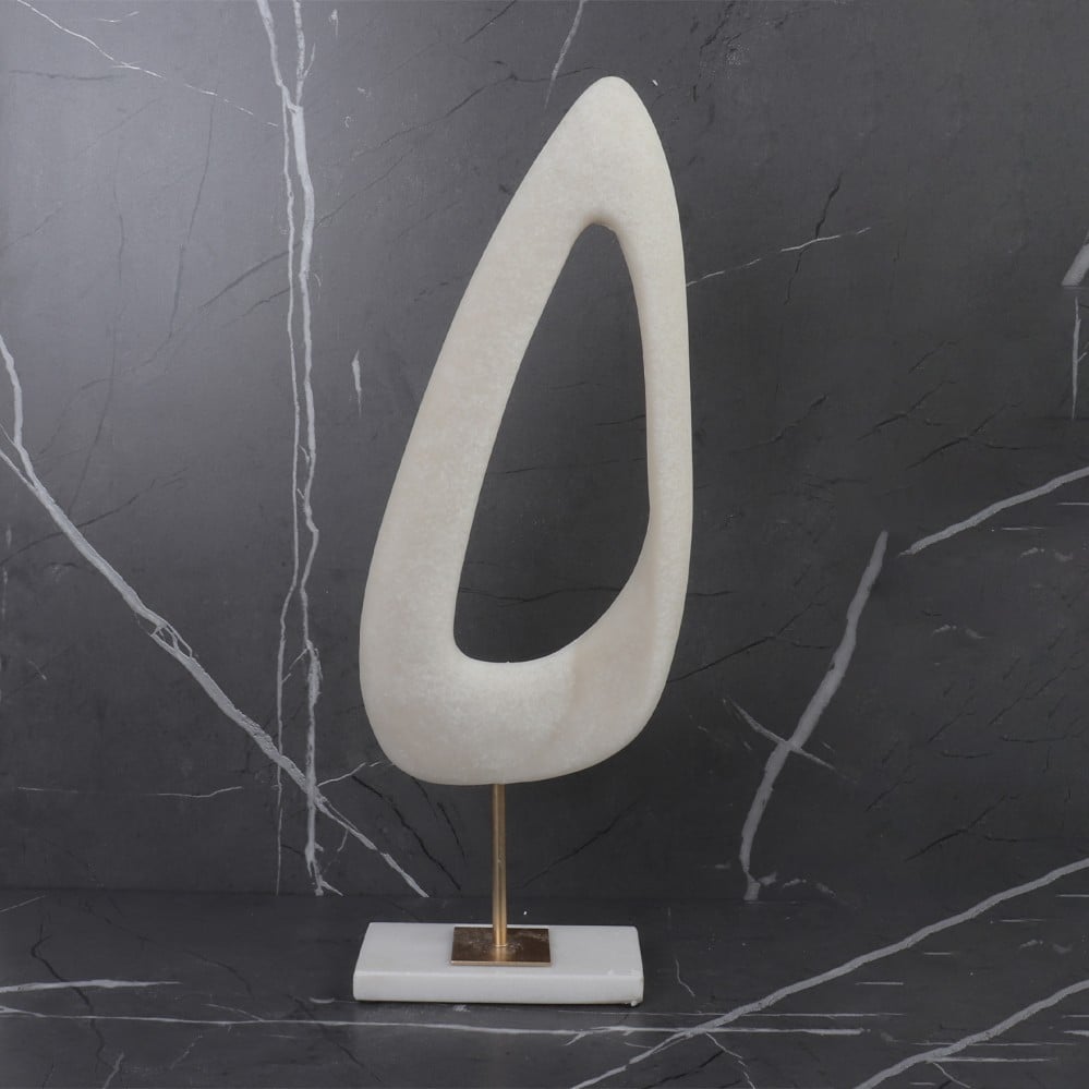 قطعة ديكور - راتنج بقاعده رخاميه - 16x50 cm - بيج + ابيض + ذهبي