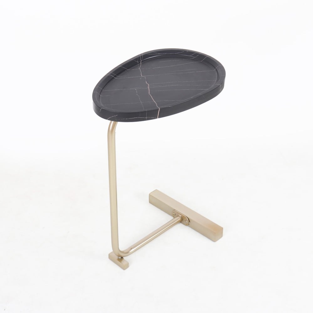 طاولة خدمة مفرد قواعد معدن بسطح خشبي - خشب + حديد - 45x30x61 cm - أسود + ذهبي