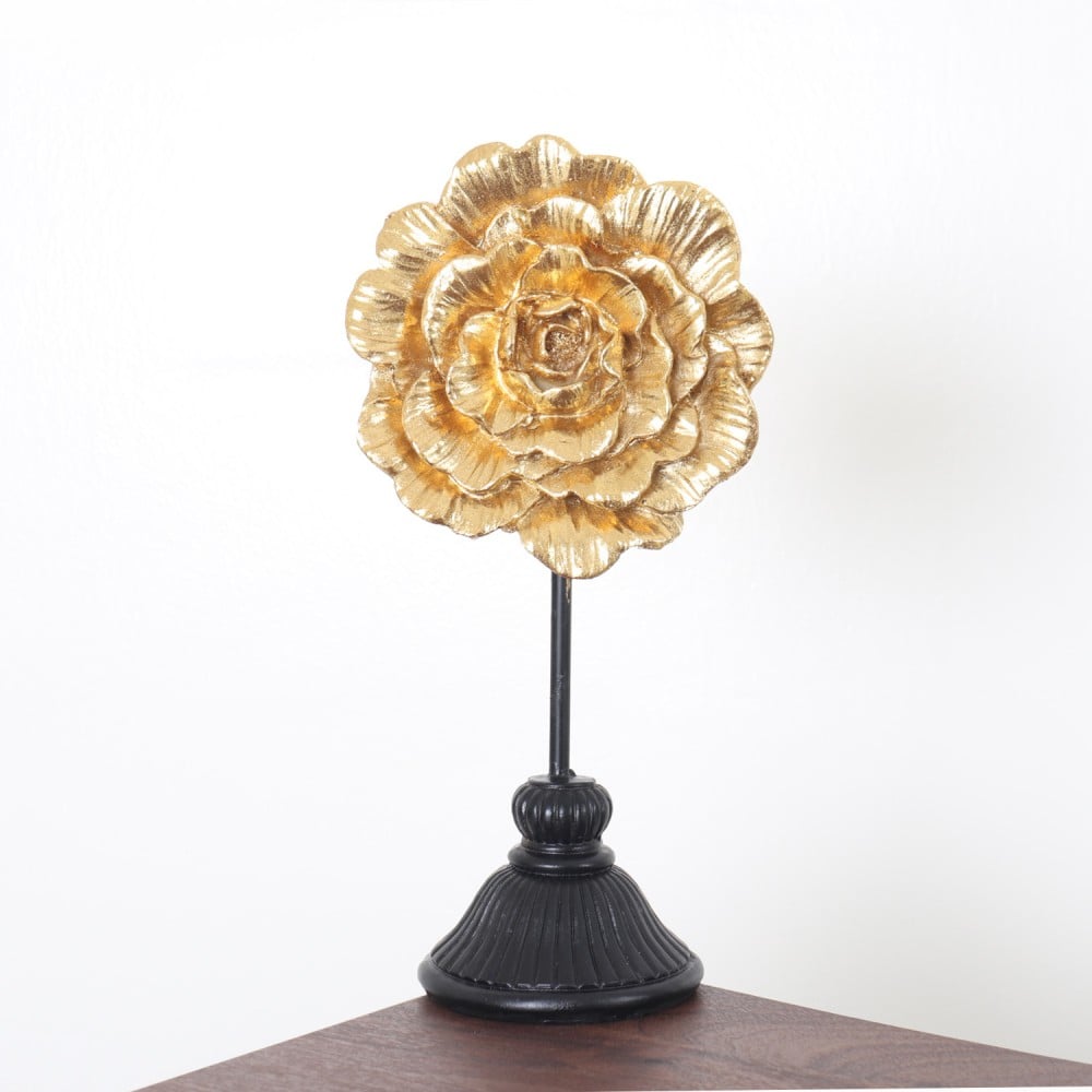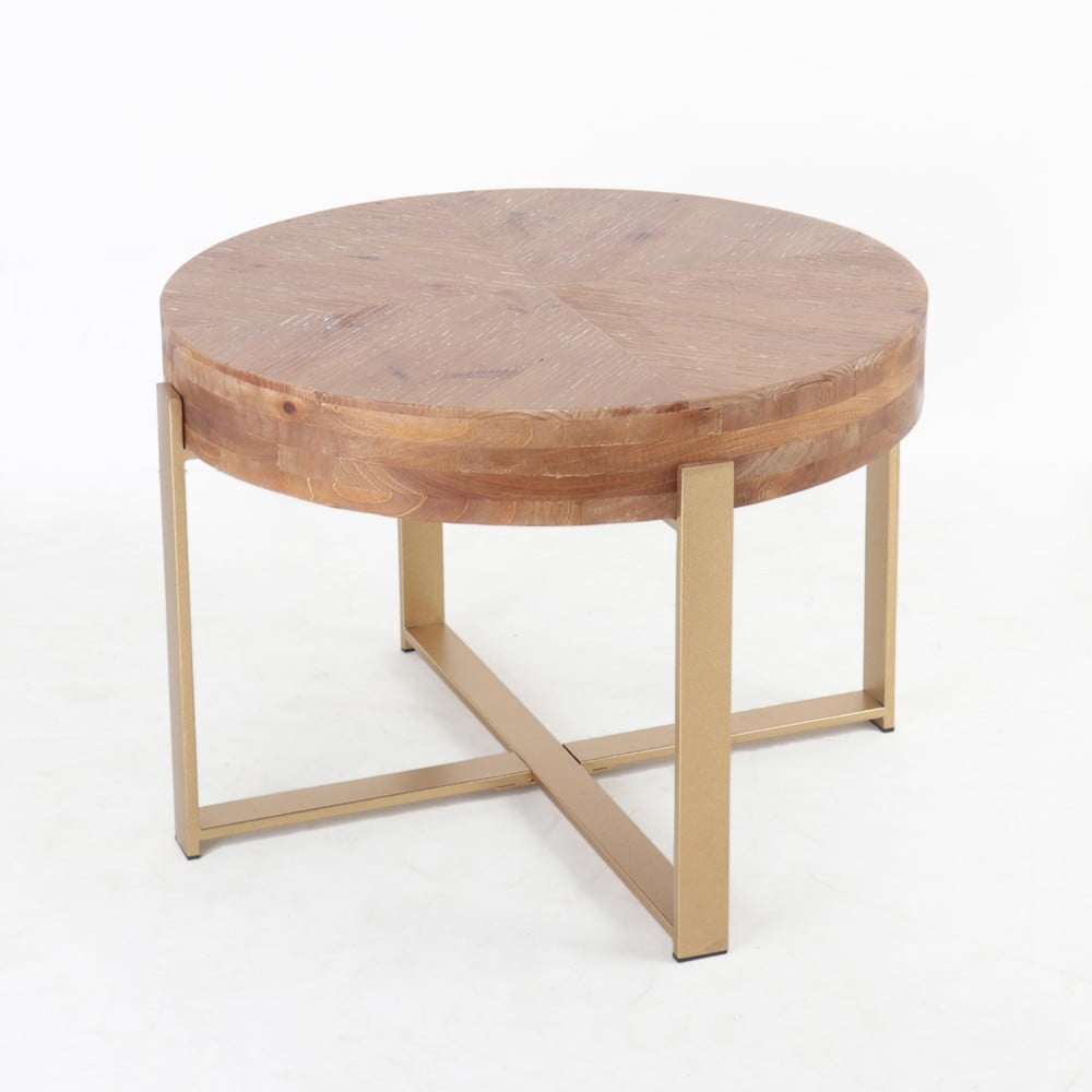 طاولة سطح خشب وقواعد معدن ذهبي - خشب + حديد - 59x43 cm - بني + ذهبي