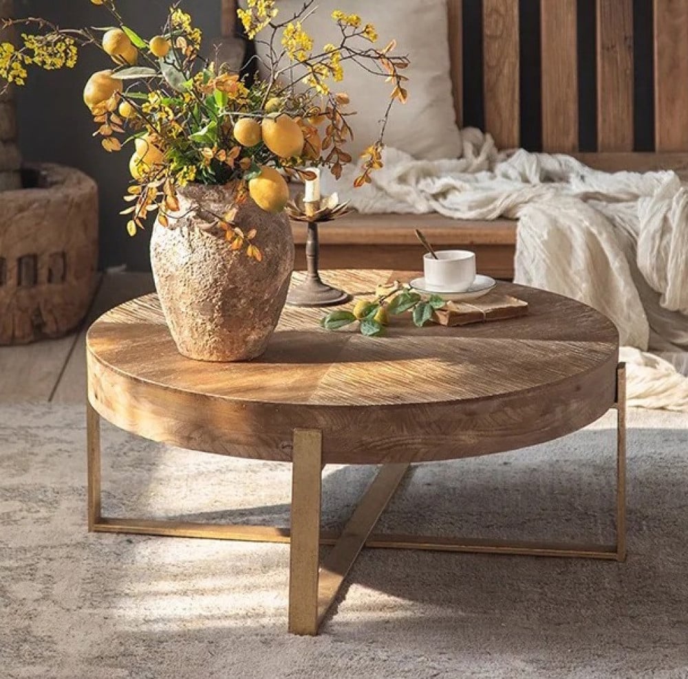 طاولة مركن معتق سطح خشب قاعدة خشب