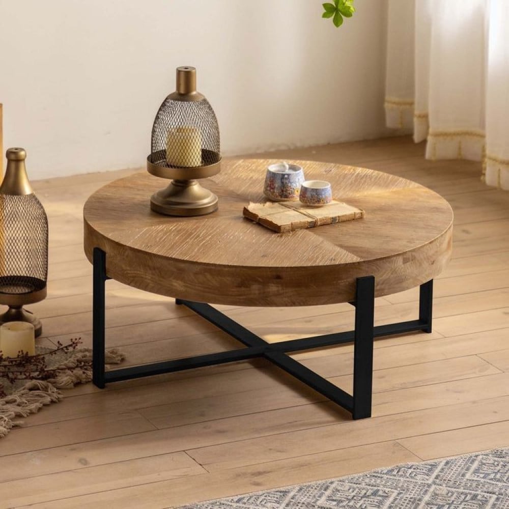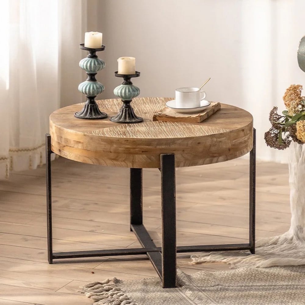 طاولة - مركن معتق سطح خشب قاعدة معدن
