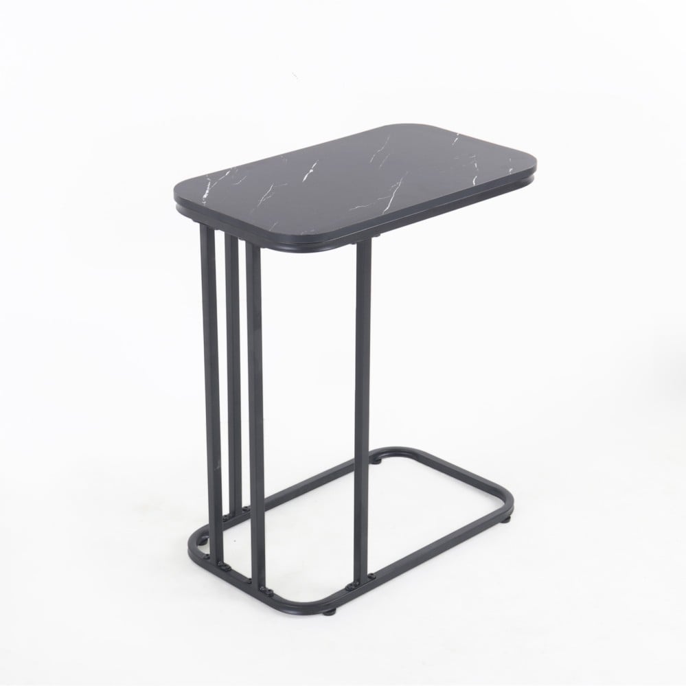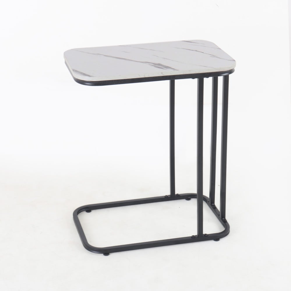 طاولة خدمة مفردة سطح خشب قواعد معدن - خشب MDF + حديد - 50x30x59 cm - ابيض رخامي + اسود